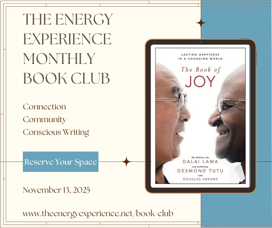 Join The Energy Experience community for 60 minutes of celebration within the written word. This will be a facilitated time dedicated to connecting our hearts and minds with writing that heals, enlivens, and inspires. We kick off with a legendary duo! In honor of World Kindness Day in November, we will meet online (via Zoom) to discuss The Book of Joy. Pull a copy off your shelf, find it at the library, purchase it from one of your independent bookshops, borrow it from a friend (and invite them to join you!), grab your e-reader, or listen in . . . and then let’s gather.