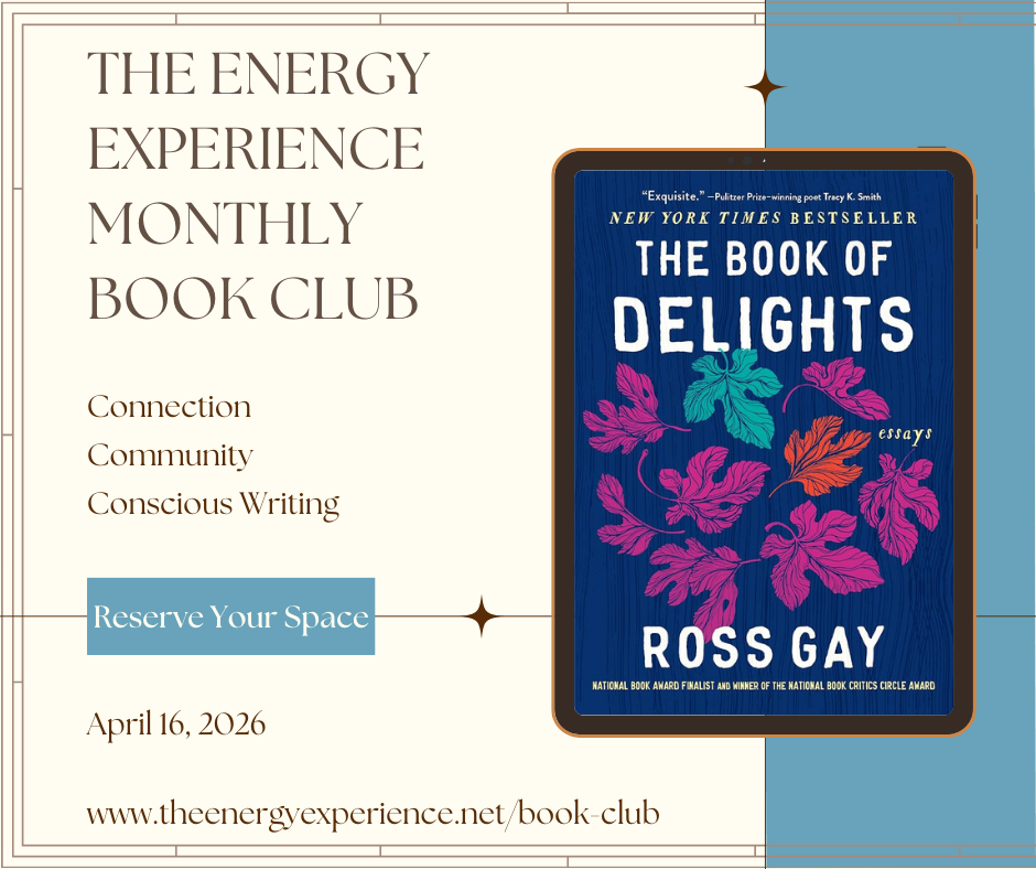 Welcome to the book club! Our pick for April is The Book of Delights by Ross Gay. Join The Energy Experience community for 60 minutes of celebration within the written word. This will be a facilitated time dedicated to connecting our hearts and minds with writing that heals, enlivens, and inspires.